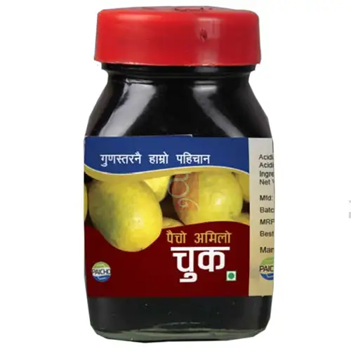 Chuk Amilo is a traditional Nepali ingredient made by cooking lemon juice (or other sour fruits) down to a thick, concentrated paste. Its tangy, slightly acidic flavor adds brightness and balance to otherwise plain vegetables.